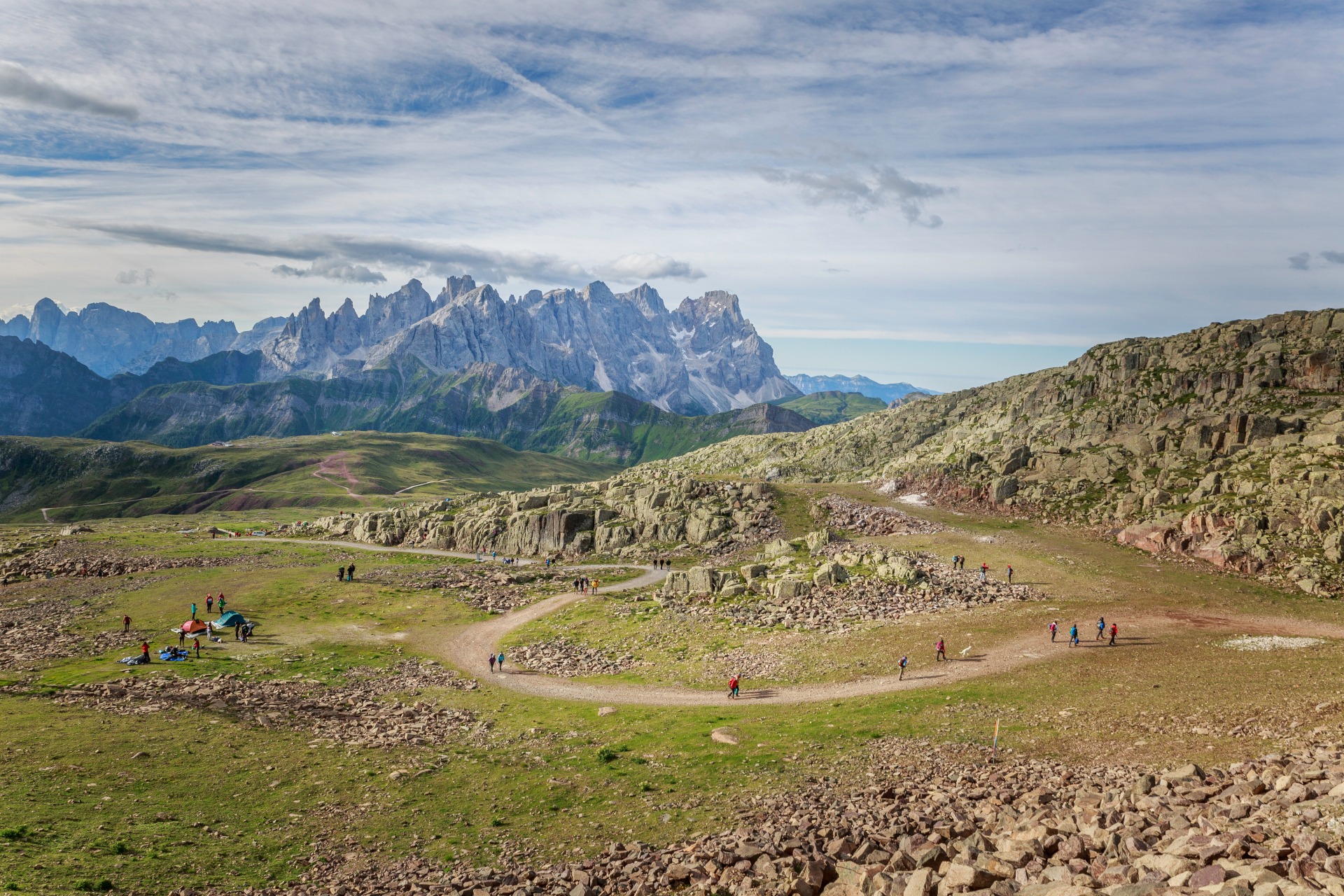 Starting from Moena along forest roads we head to the San Pellegrino Pass to then reach, by cable car, the panoramic roof of Col Margherita where the “In Alto” hut is located. We then continue our descent to Passo Valles and then on to Val Venegia, Paneveggio, and Lago di Fortebuso. We then descend to Predazzo and return to Moena along the cycle path.