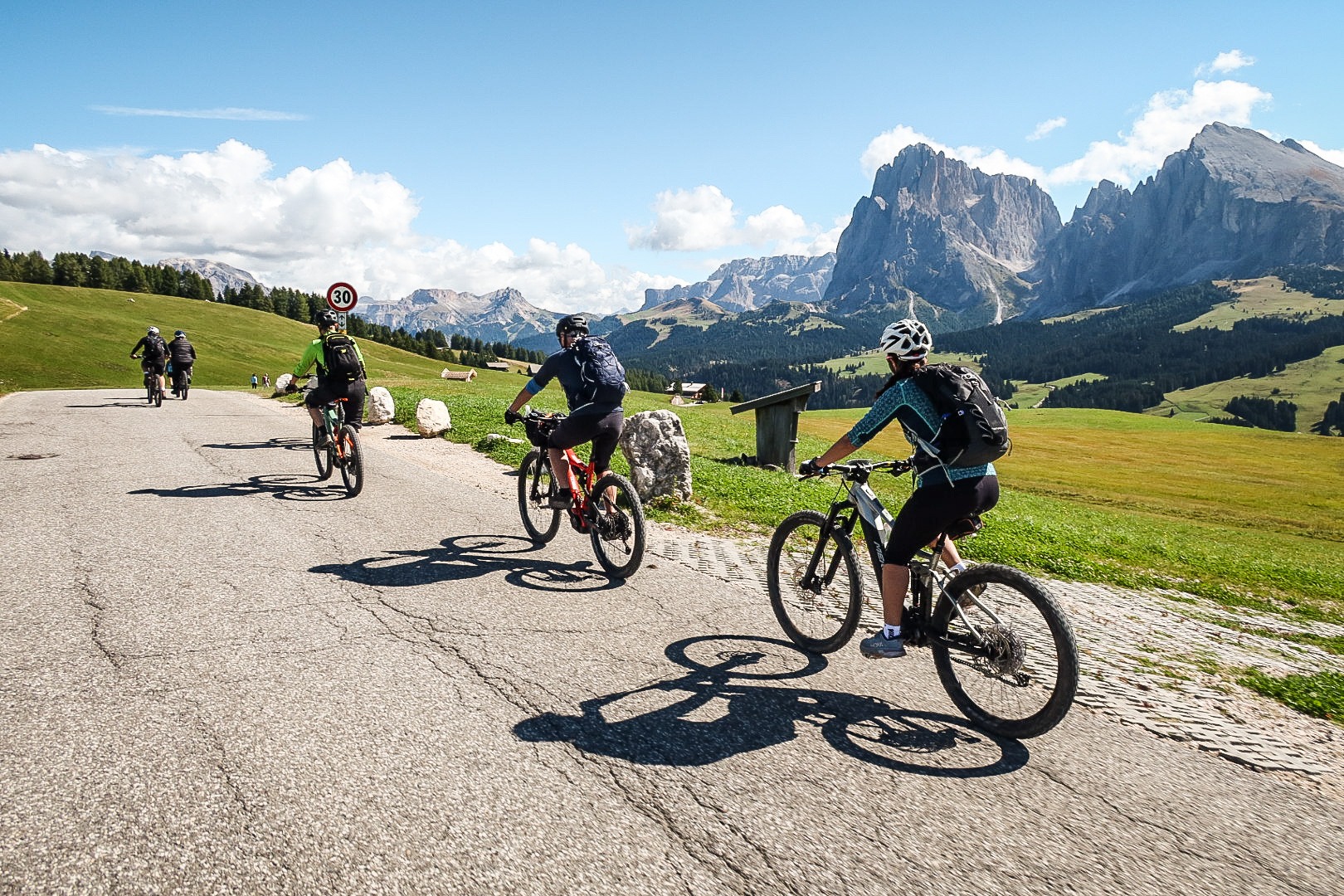 Tour di intera giornata dai facili percorsi e dalle ampie e grandiose vedute che girerà ampiamente attorno al massiccio del Sassolungo; discendendo tutta la Val Gardena, da Ortisei con impianto si sale all’Alpe di Siusi e, dopo averla attraversata interamente si rientra per la magnifica Val Duron.